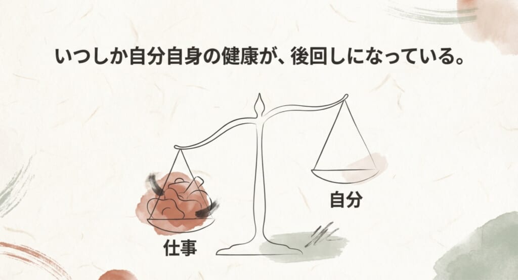 そんな仕事を続けていると、いつの間にか自分自身の健康が後回しになっていることがあります。