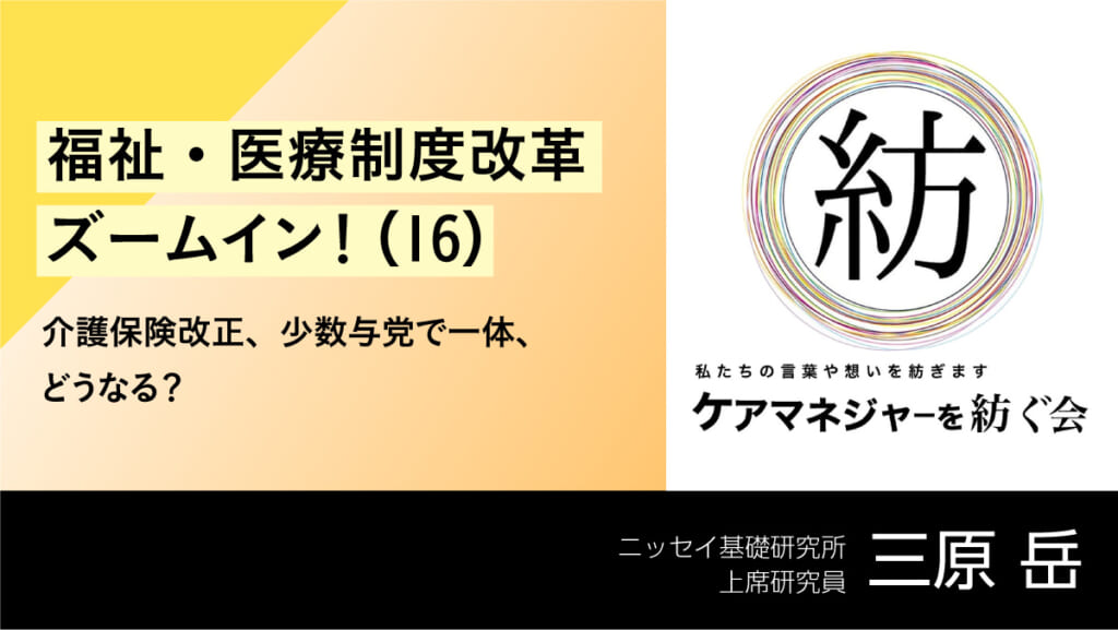 福祉・医療制度改革ズームイン(16) 介護保険改正、少数与党で一体、どうなる? Read More »