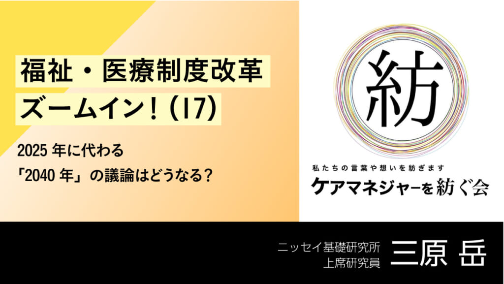 ニッセイ基礎研究所上席研究員三原岳 厚生労働省は医療・介護制度の見直しに関して、従来の「2025年」に代わる目